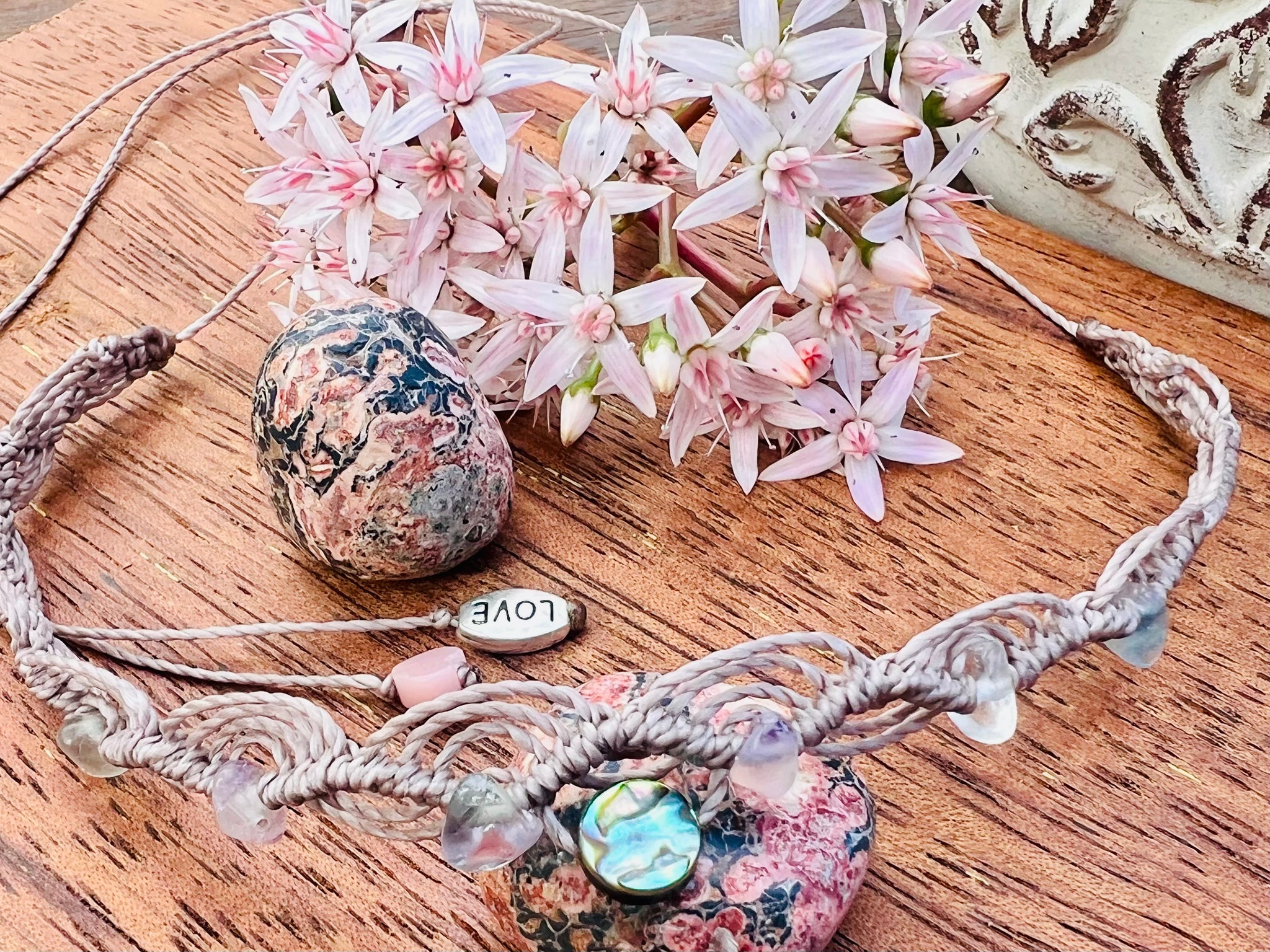 Carrying its own quiet magic. Every choker is alive with intention, allowing protection, clarity, love, and inspiration to flow through the weave. The stones and cord merge into a single, enchanted form that moves with you, whispering subtle magic with every glance and gesture.
